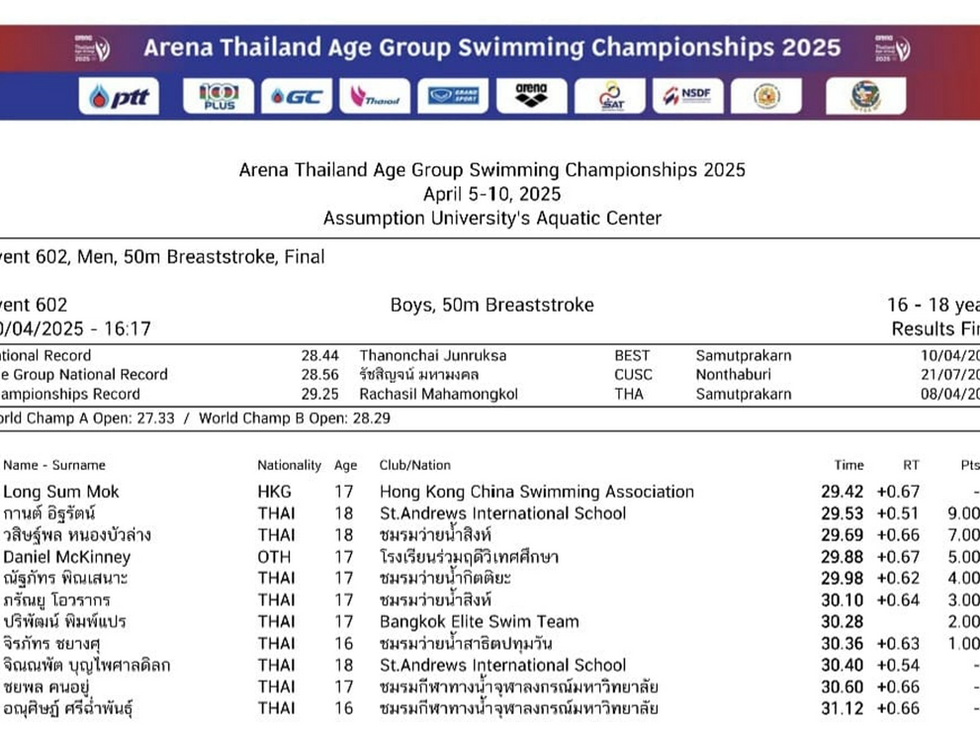 泰國分齡游泳比賽2025